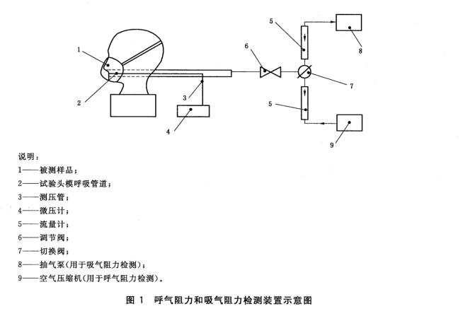 將被測(cè)試樣佩戴在匹配的試驗(yàn)頭模上,調(diào)整面罩的佩戴位置及頭帶的松緊度,確保面罩與試驗(yàn)頭模的密合。再將通氣量調(diào)節(jié)至(85士1)L/min,測(cè)定并記錄吸氣阻力。在測(cè)試過(guò)程中,采取適當(dāng)方法,避免試樣貼附在呼吸管道口。