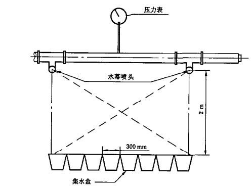 水幕應(yīng)連續(xù)完整、布水均勻,任一集水盒中灑水量不應(yīng)低于平均灑水量的50%,任一集水盒中灑水量不應(yīng)高于平均灑水量的200%