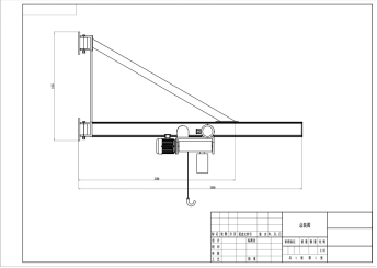 重錘自動吊裝裝置,采用懸臂吊結(jié)構(gòu)。懸臂一端固定在桁架大梁上,可繞支點(diǎn)轉(zhuǎn)動,轉(zhuǎn)動角度可根據(jù)限位機(jī)構(gòu)調(diào)整,大梁采用20#工字鋼,保證剛度和強(qiáng)度,懸臂上方增加加強(qiáng)鋼梁,保證使用的穩(wěn)定性。吊裝裝置使用電動環(huán)鏈葫蘆,可上下左右運(yùn)動,運(yùn)行平穩(wěn),性能可靠,且噪音較低。大梁遠(yuǎn)端設(shè)電氣限位機(jī)構(gòu),增加機(jī)械擋塊,防止電動環(huán)鏈葫蘆滑落。結(jié)構(gòu)示意圖見下圖。
